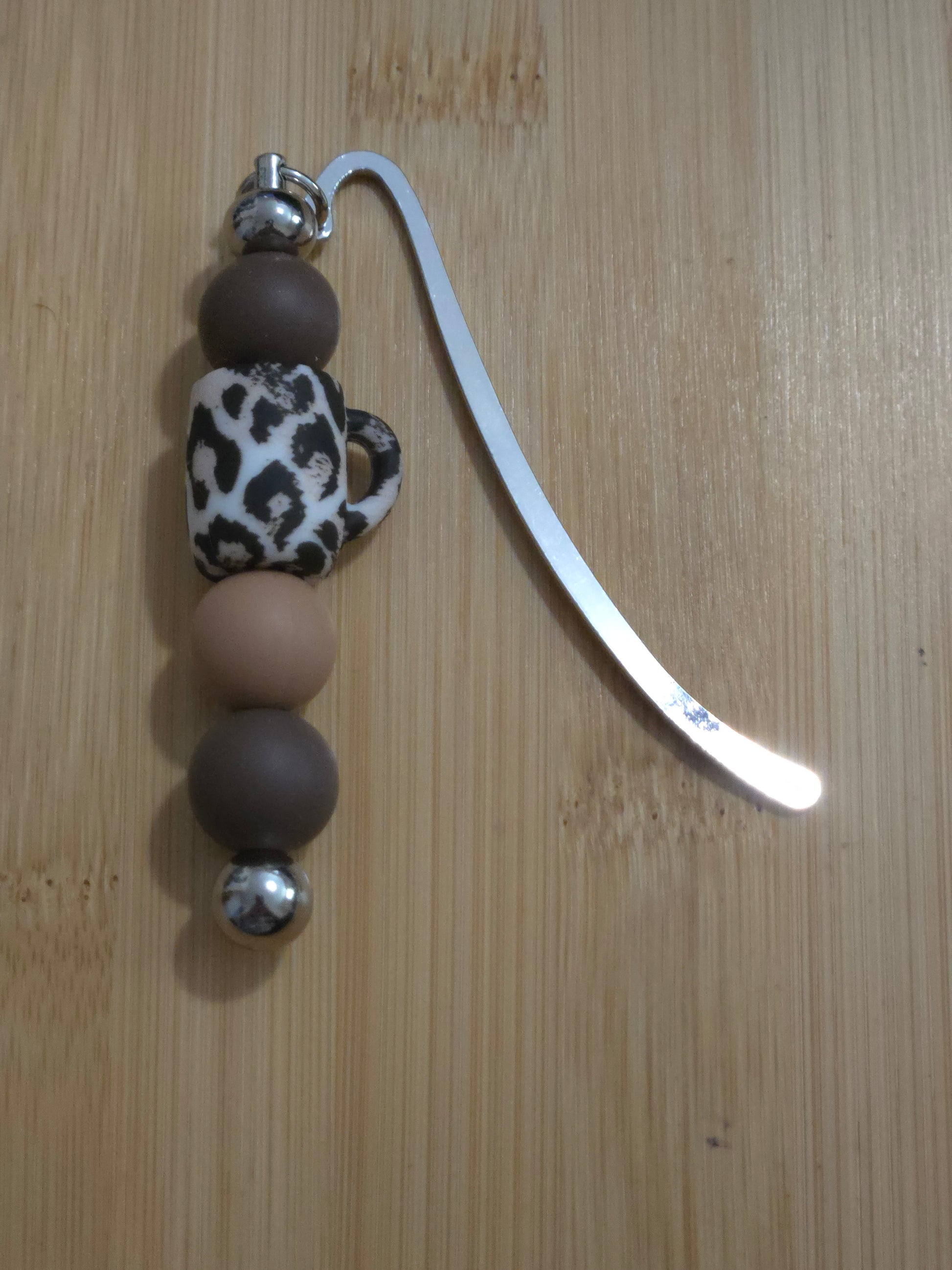Brown beads with a leopard cup focal