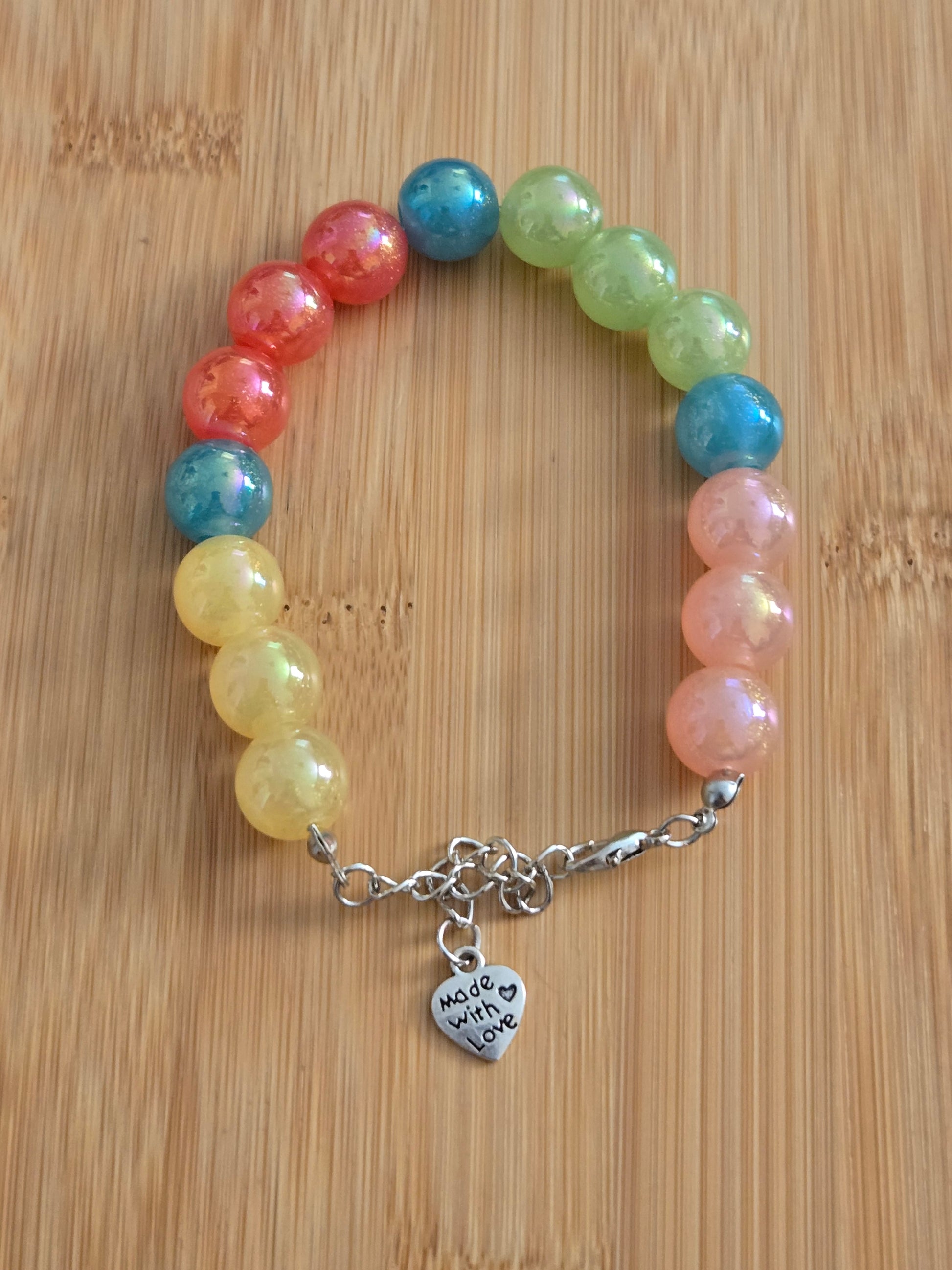 Multicolored iridescent beaded bracelet
