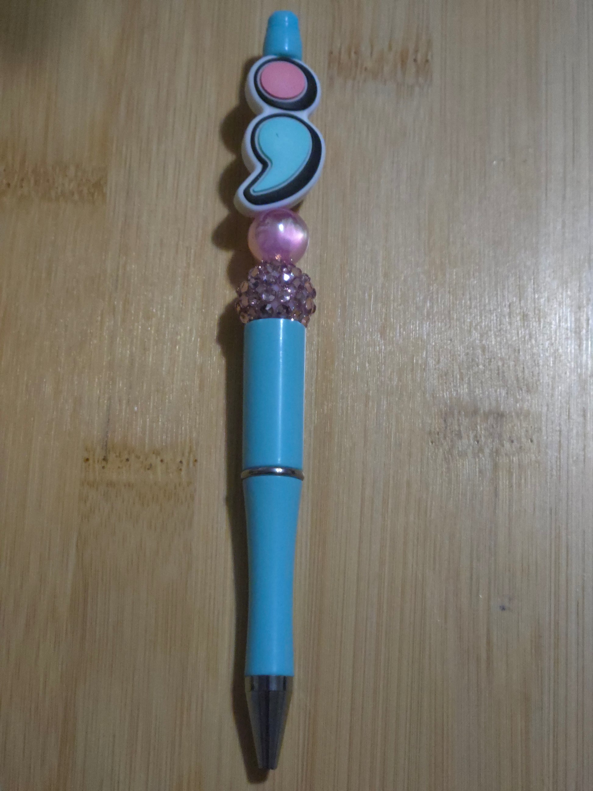 Light blue pen with pink beads and "Its Ok To Not Be Ok" focal