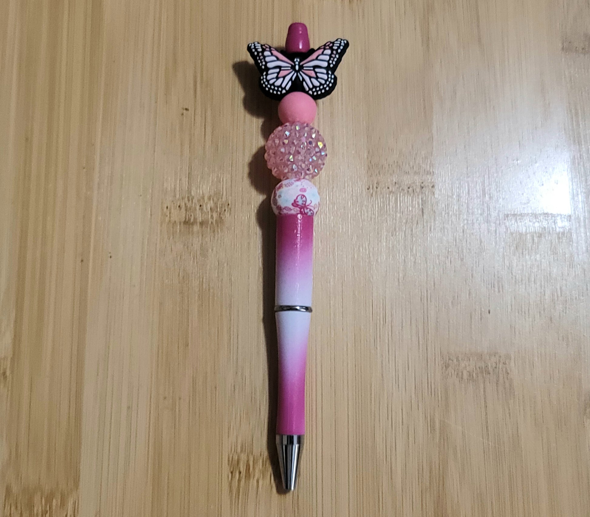 Pink ombre pen with butterfly bead, sparkly pink beads and a butterfly focal