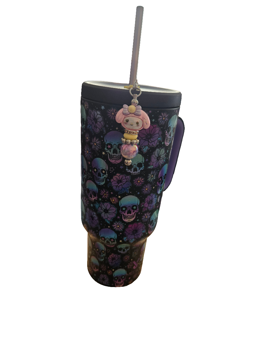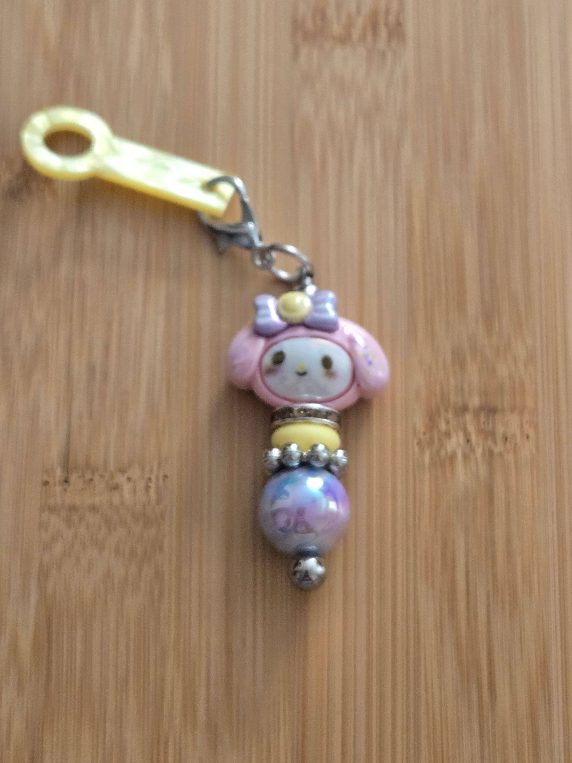 Iridescent and yellow beads and a Hello Kitty and Friends bead