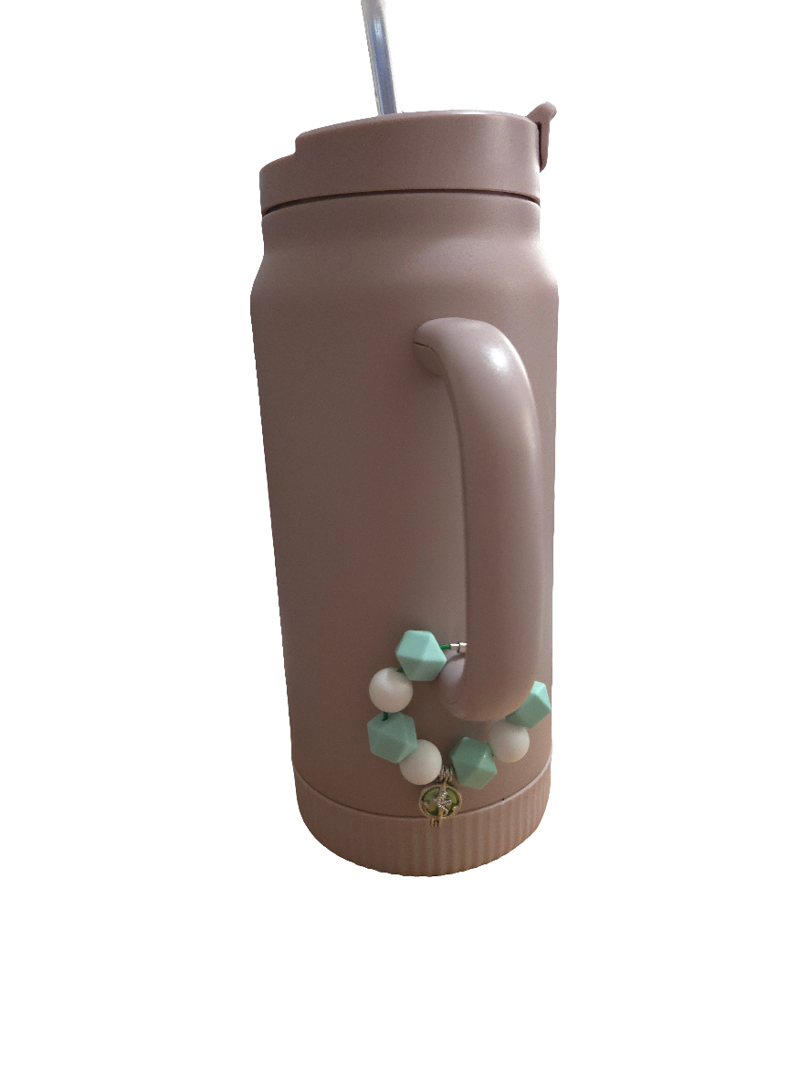 Light teal and white beads with a fresh water carved pearl in an anchor charm